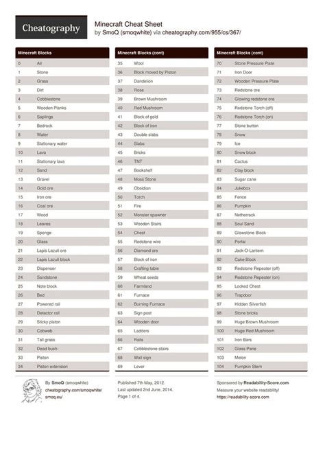 Minecraft Pc Cheat Sheet